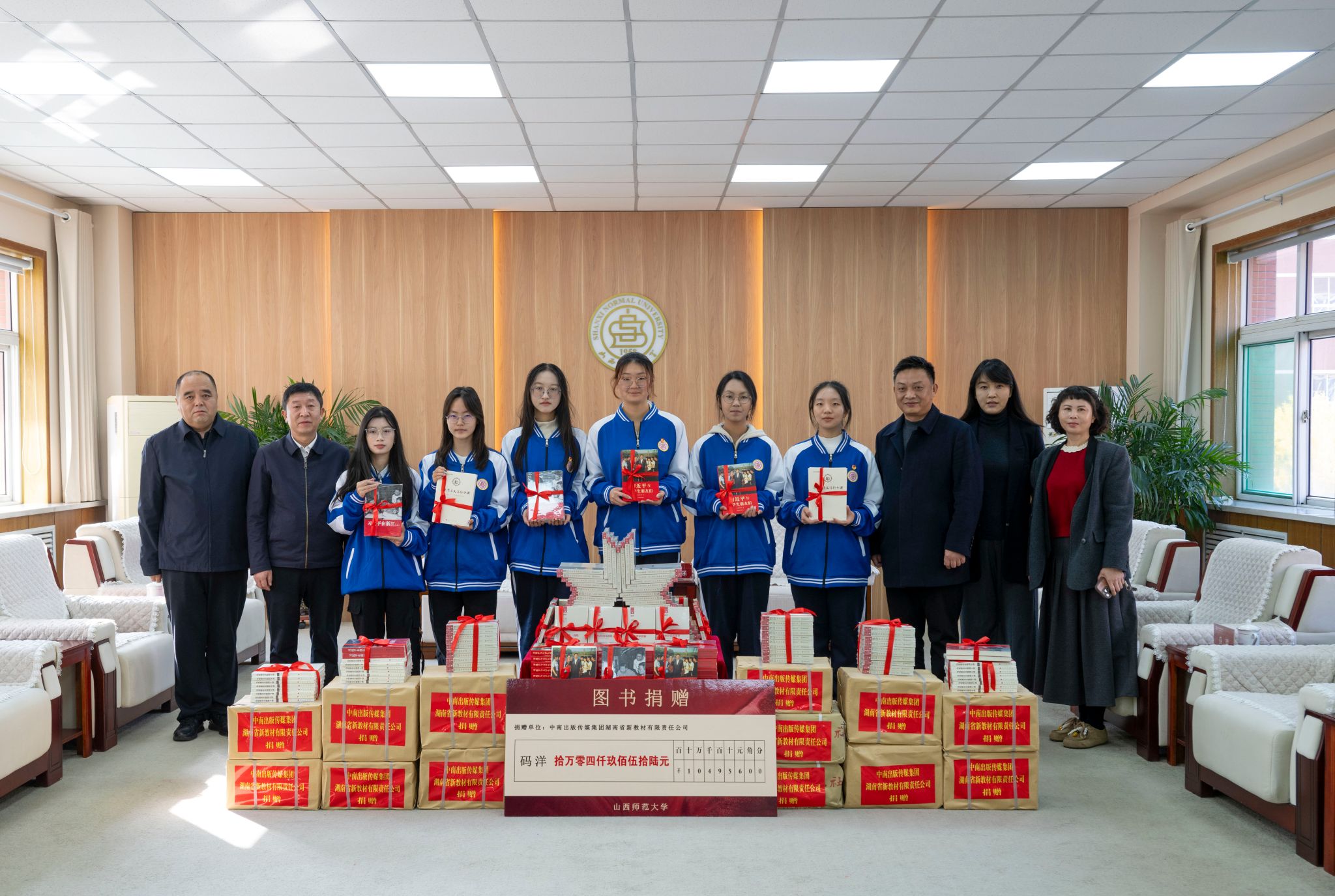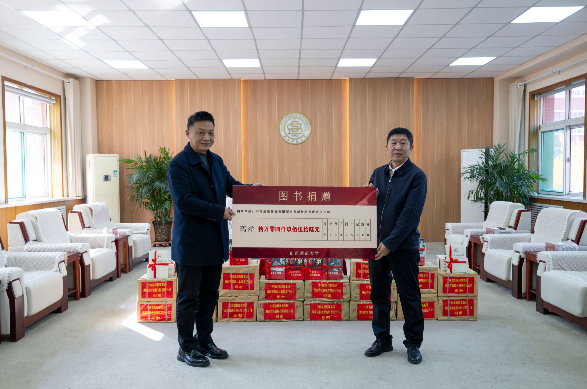 10月28日上午,中南出版传媒集团向我校捐赠图书仪式在办公楼207会议室举行。中南出版传媒集团湖南省新教材有限责任公司董事、副总经理谢林卫,山西分公司负责人路霞,我校党委副书记王志强出席活动。