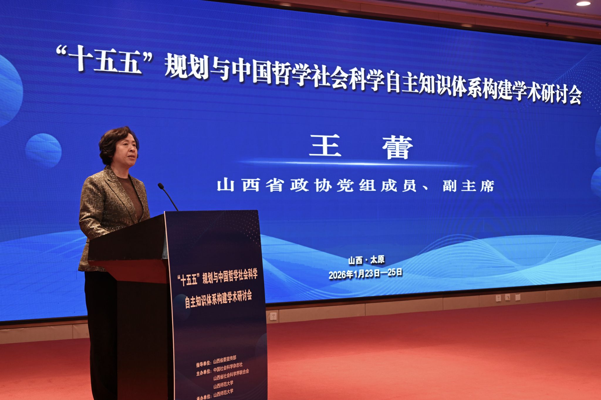 王蕾表示,在“十五五”开局之年,也是习近平总书记在哲学社会科学工作座谈会上发表重要讲话十周年之际,举办此次研讨会是深入学习贯彻党的二十届四中全会精神、扎实推进中国式现代化新征程的重要举措,也是自觉以习近平文化思想为指引,学习贯彻全国宣传部长会议精神,着力将学术优势转化为服务“十五五”发展大局实际效能的探索实践。山西历史悠久,文化底蕴深厚,为中华文明传承发展作出了独特贡献,也为哲学社会科学研究提供了丰富滋养。