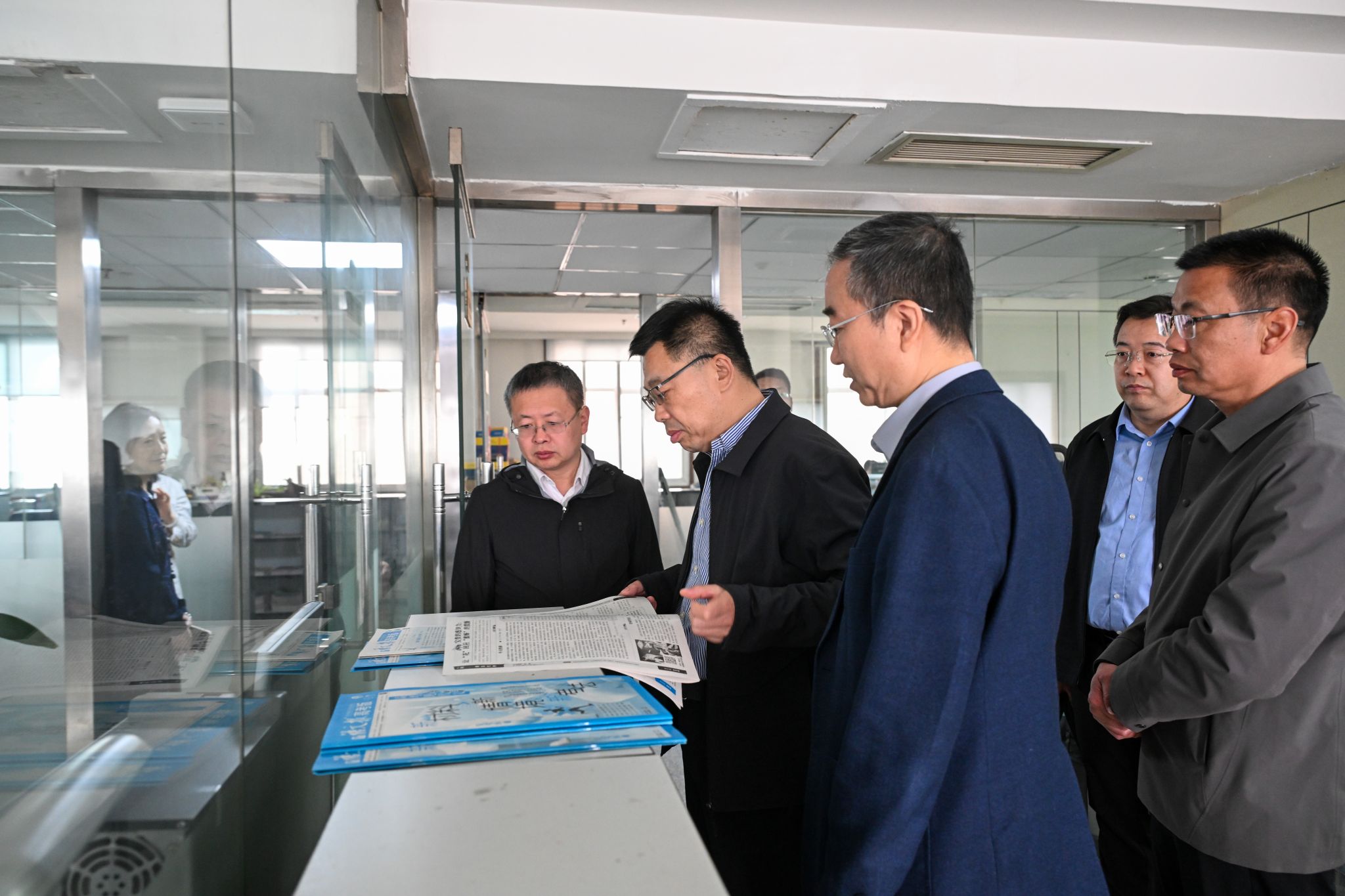 会前,校领导一行实地走访了语文报社、英语周报社、数理报社,深入编辑部、教研中心等地,与工作人员亲切交流,详细了解报刊服务定位、销售渠道及报社整体运营等情况。(白晶/文 张蕴强/摄)