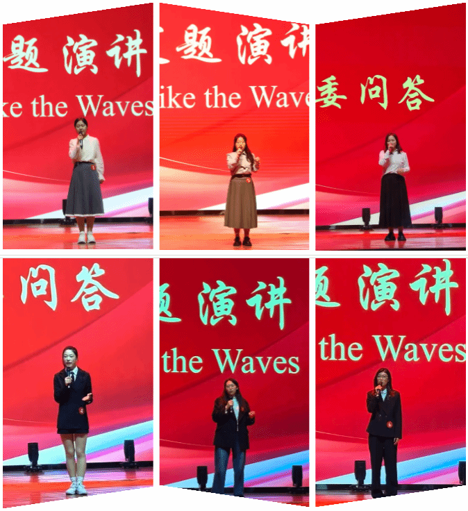 本次比赛由教务部主办、外国语学院承办,历经一个月,吸引了全校百余名学生报名参加。经过初赛的激烈角逐,6名同学成功晋级决赛。决赛设有定题演讲、即兴评述与问答等环节,选手们紧扣“Strike the Waves(击水中流,破浪前行)”核心命题,用英语讲述当代青年的奋斗故事与创新之智。评委们从语言表达、逻辑结构与内容立意等方面作出专业点评。