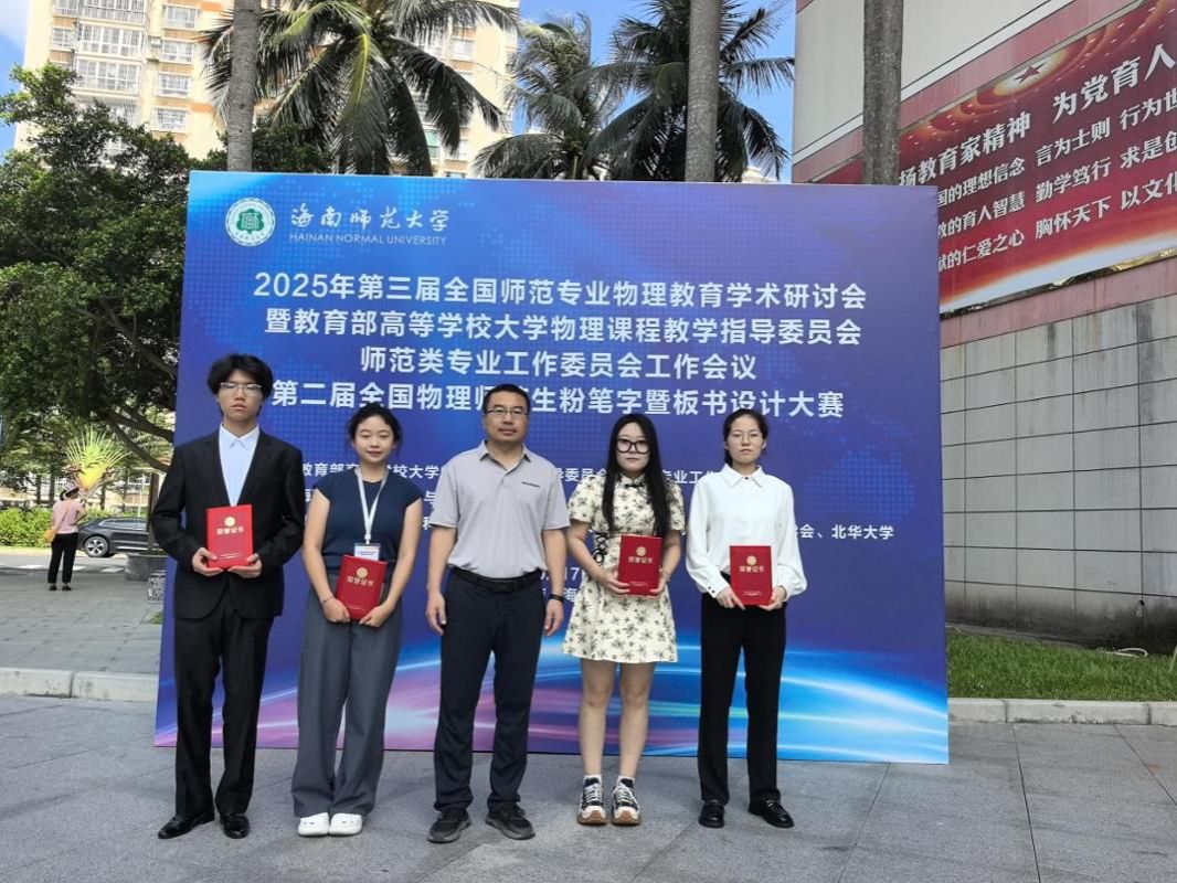 10月17日至19日,第二届全国物理师范生粉笔字暨板书设计大赛决赛在海南师范大学举行。我校物理与电子工程学院学生获得一等奖1项,二等奖3项。
