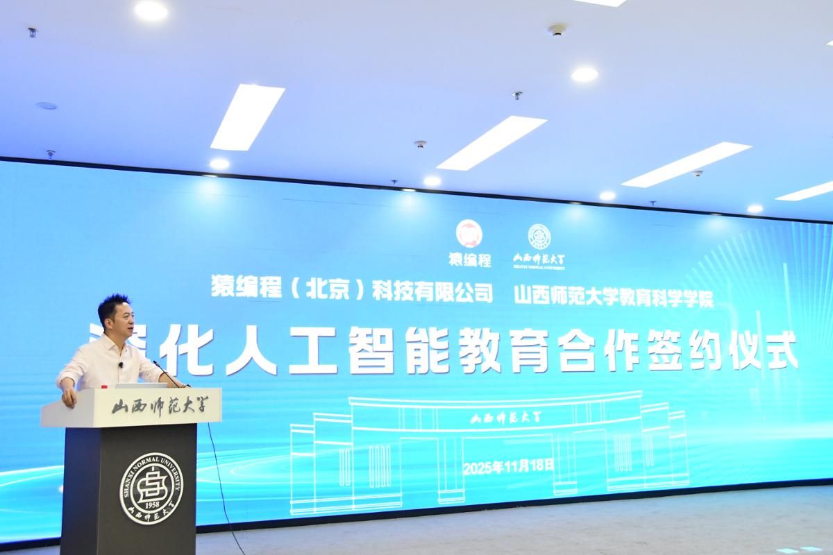 11月18日,我校教育科学学院与猿编程(北京)科技有限公司深化人工智能教育举行合作签约仪式。院企双方将围绕师范生人工智能素养提升、人工智能教育实验室建设、课题联合研究、区域教师培训以及人工智能教育实践改革等五大方向开启深度合作;猿编程公司无偿为教育科学学院捐赠200套AR学习套装及配套课程,并提供每季度一次的专题培训,同时为研究生开通实习通道。