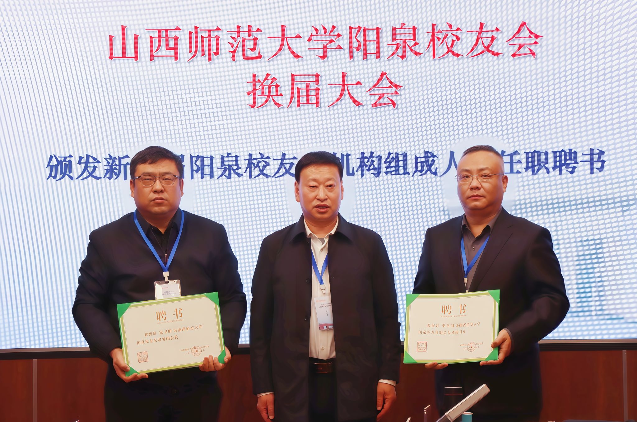 会议听取了上一届阳泉校友会工作报告,宣读了山西师范大学校友总会关于同意阳泉校友会换届的批复。选举产生了新一届阳泉校友会组织机构。我校数学系1984届毕业生吴岱瑞、生物系1968届毕业生梁永庆当选阳泉校友会名誉会长,中文系1989届毕业生赵瑞玲当选阳泉校友会会长,中文系1996届毕业生宋卫明当选阳泉校友会常务副会长,中文系2004届毕业生李金朋当选阳泉校友会副会长兼秘书长。新当选的校友会机构成员在表态发言中表示,一定牢记母校教诲、关注母校发展、以实际行动为母校高质量发展添砖加瓦。