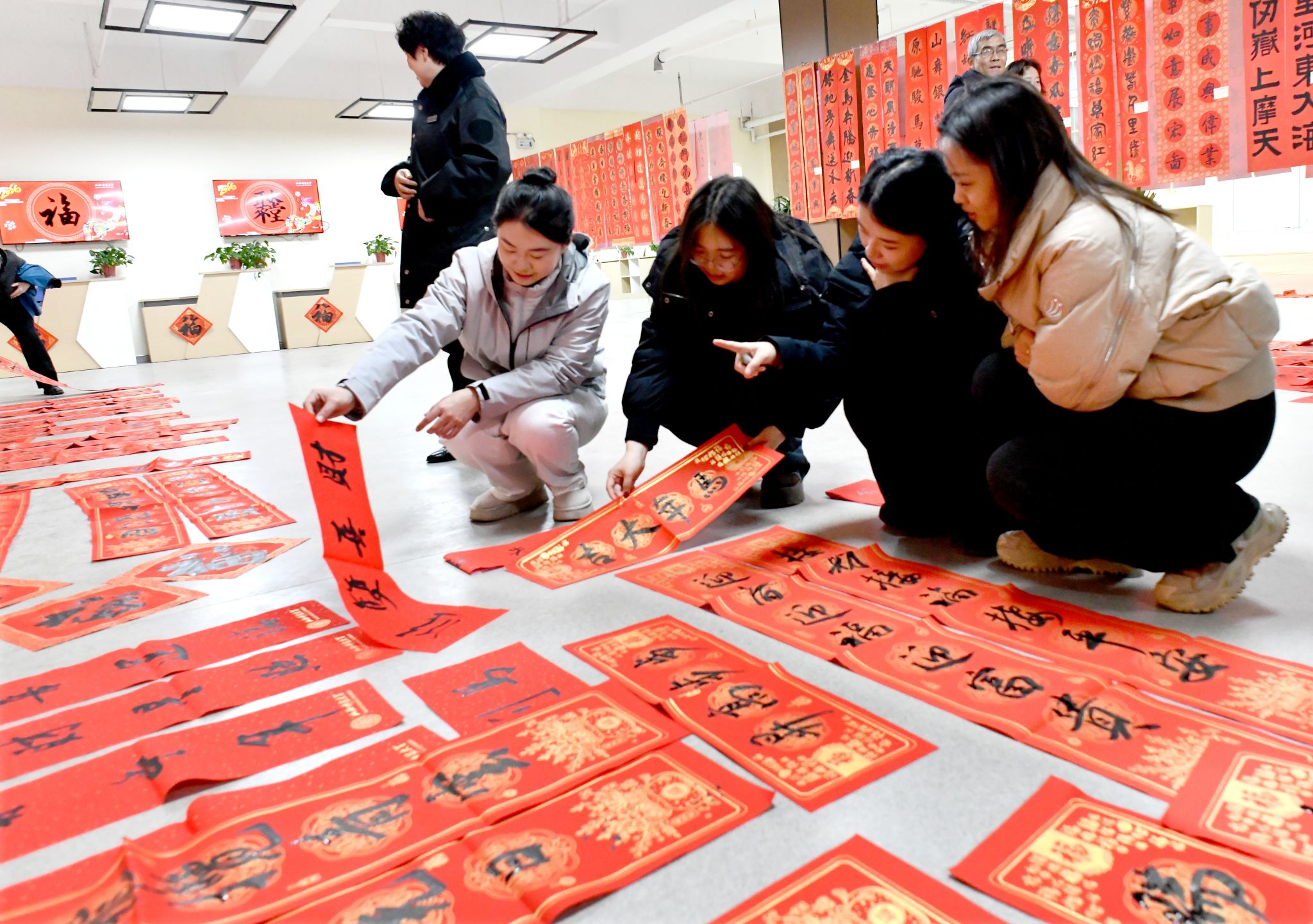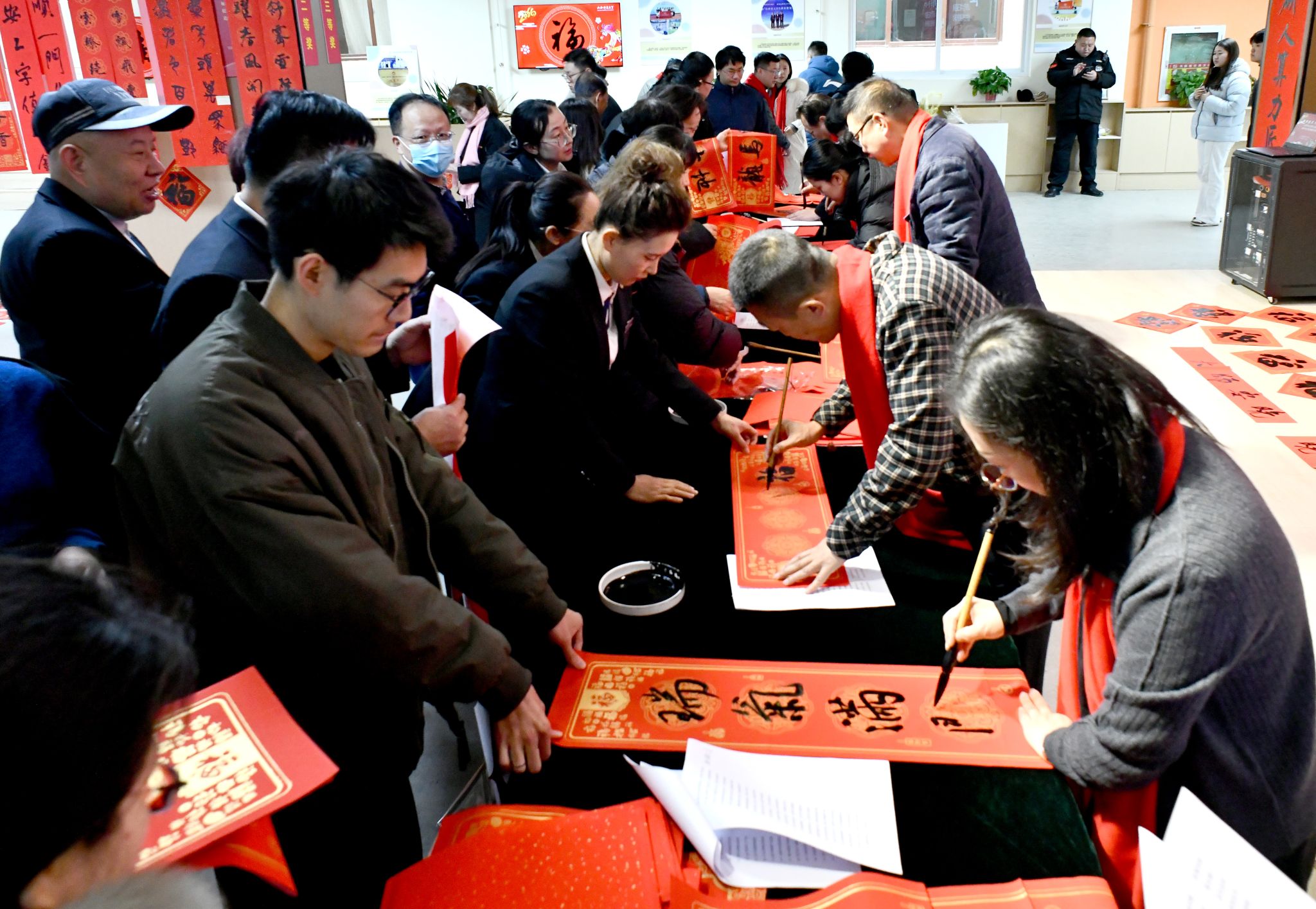 活动将楹联书法作品展与现场笔会相结合,以书法涵养尊师之风,借墨香厚植向学之气。活动现场,书法学院师生以及书法爱好者一同挥毫泼墨,精心书写寓意吉祥的春联、遒劲有力的“福”字以及励志劝学的经典楹联,并将作品赠予在场师生,以传统书法艺术传递新春祝福与暖心敬意。