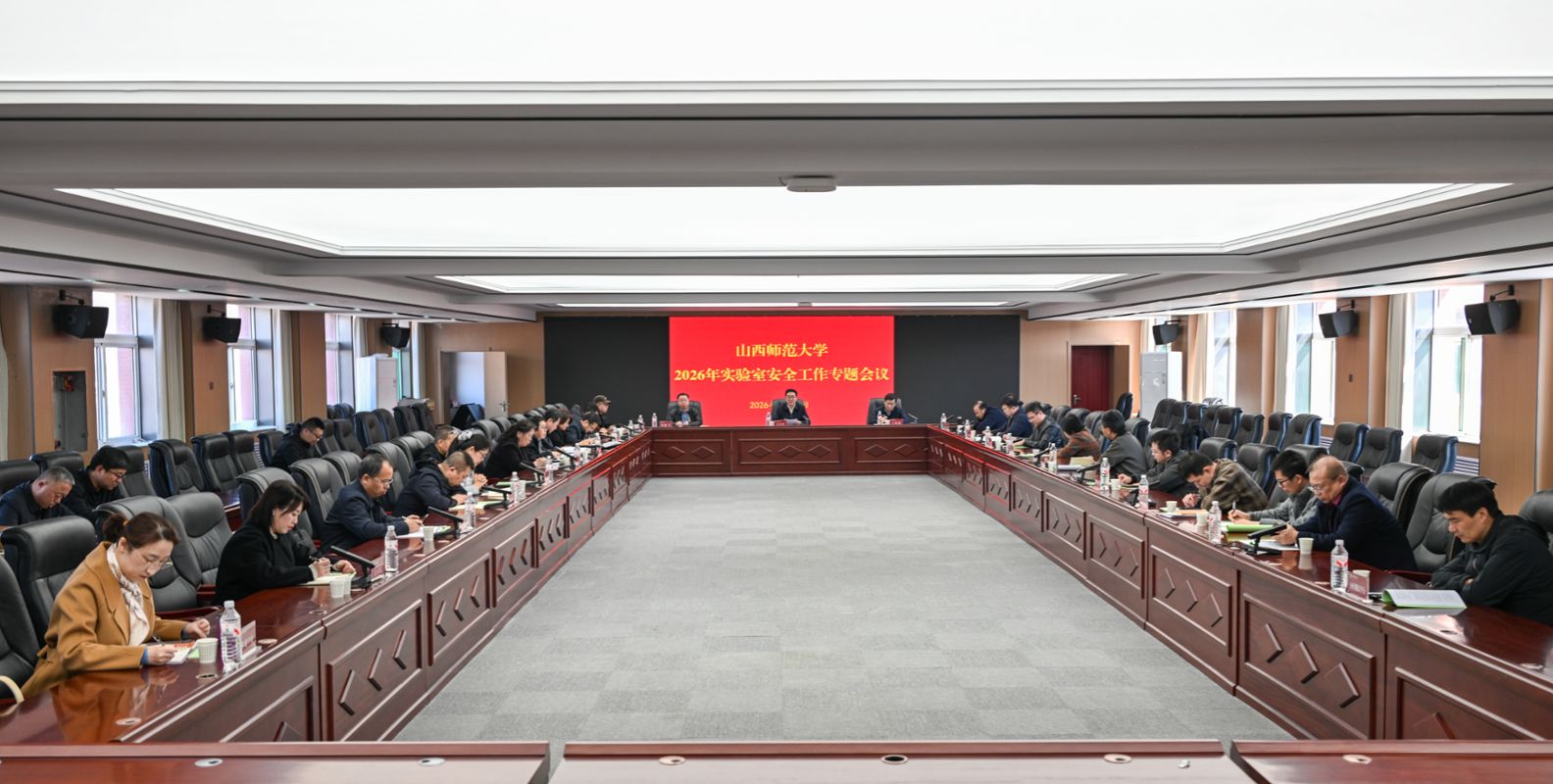 会上,王小平与各二级单位负责人代表签署了实验室安全责任书。会议集体学习了《中华人民共和国危险化学品安全法》和上级有关实验室安全工作的文件精神,回顾总结了过去一年学校实验室安全工作情况,并对2026年实验室安全工作进行了全面部署。