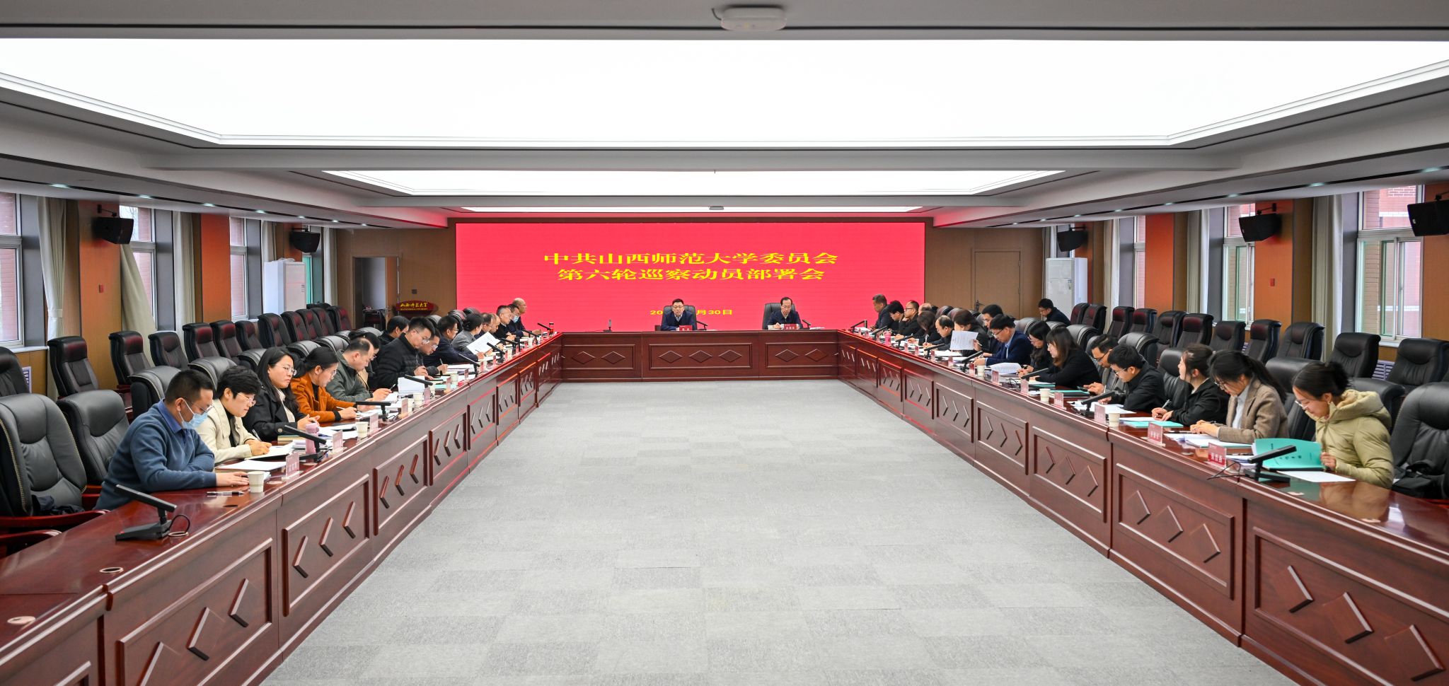 3月30日上午,中共山西师范大学委员会第六轮巡察动员部署会在办公楼506会议室召开。校党委书记、巡察工作领导小组组长殷杰出席会议并讲话,校纪委书记、巡察工作领导小组副组长郭继林主持会议。