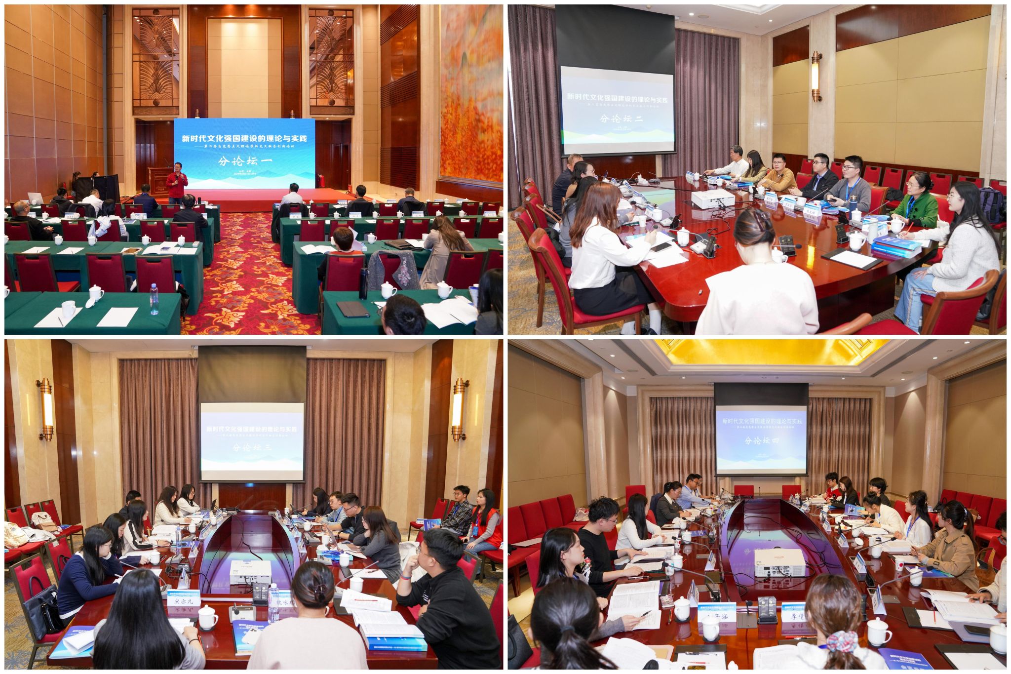 主题发言阶段,清华大学肖贵清教授、湖南大学张国祚教授、中国社会科学院尹韵公、中国人民大学董佳教授、吉林大学张波教授、江南大学陈松友教授、河北经贸大学柴艳萍教授、北京师范大学刘洪森教授、河北大学田海舰教授、郑州大学任中义教授、河北师范大学李春峰教授、山东师范大学刘本森教授、我校杨海亮副教授、北京师范大学于超副教授等分别作了发言,阐释了“第二个结合”的理论贡献、中国共产党增进文化主体性的逻辑理路,以及中华优秀传统文化传承发展的路径等内容。分论坛上,专家学者围绕人工智能赋能文化强国建设、“两个结合”与中国化马克思主义研究、新时代中国新闻传播与舆论宣传的理论与实践、中华优秀传统文化与国家治理现代化等议题展开深入交流。