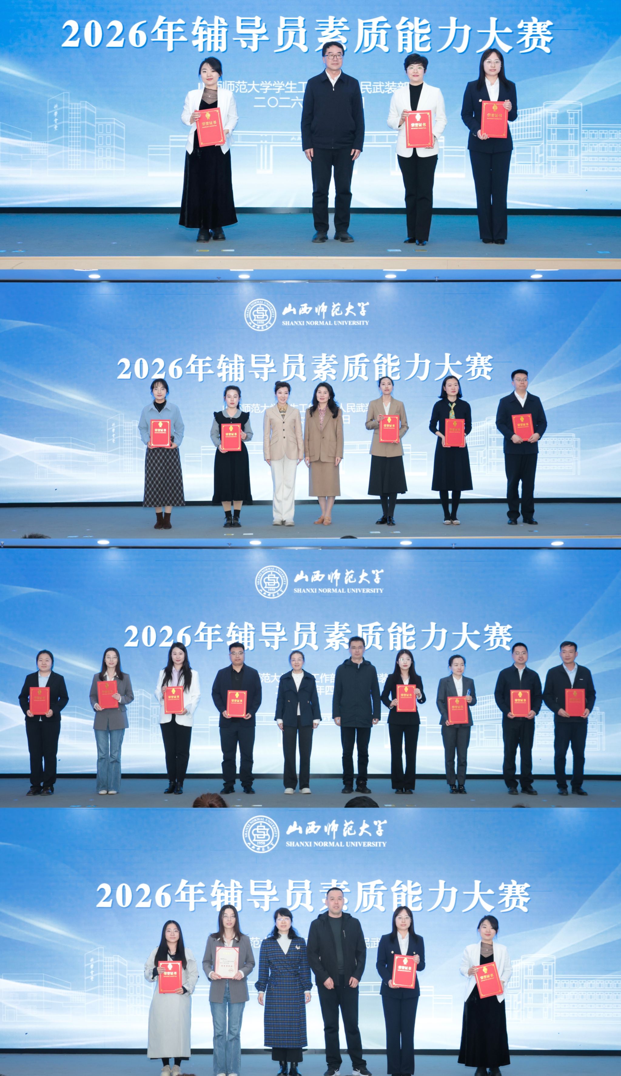 4月2日,我校2026年辅导员素质能力大赛决赛暨颁奖仪式在毓秀学堂举行。副校长王小平出席并为获奖选手颁奖。
