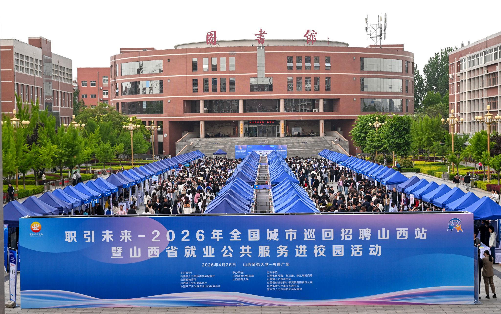 4月26日,职引未来——2026年全国城市巡回招聘山西站暨山西省就业公共服务进校园活动在我校书香广场举办。